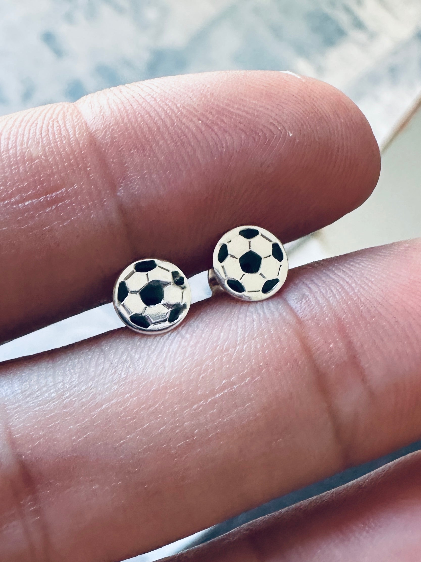 .925 Sterling Silver Mini Flat Soccer Ball Stud Earrings