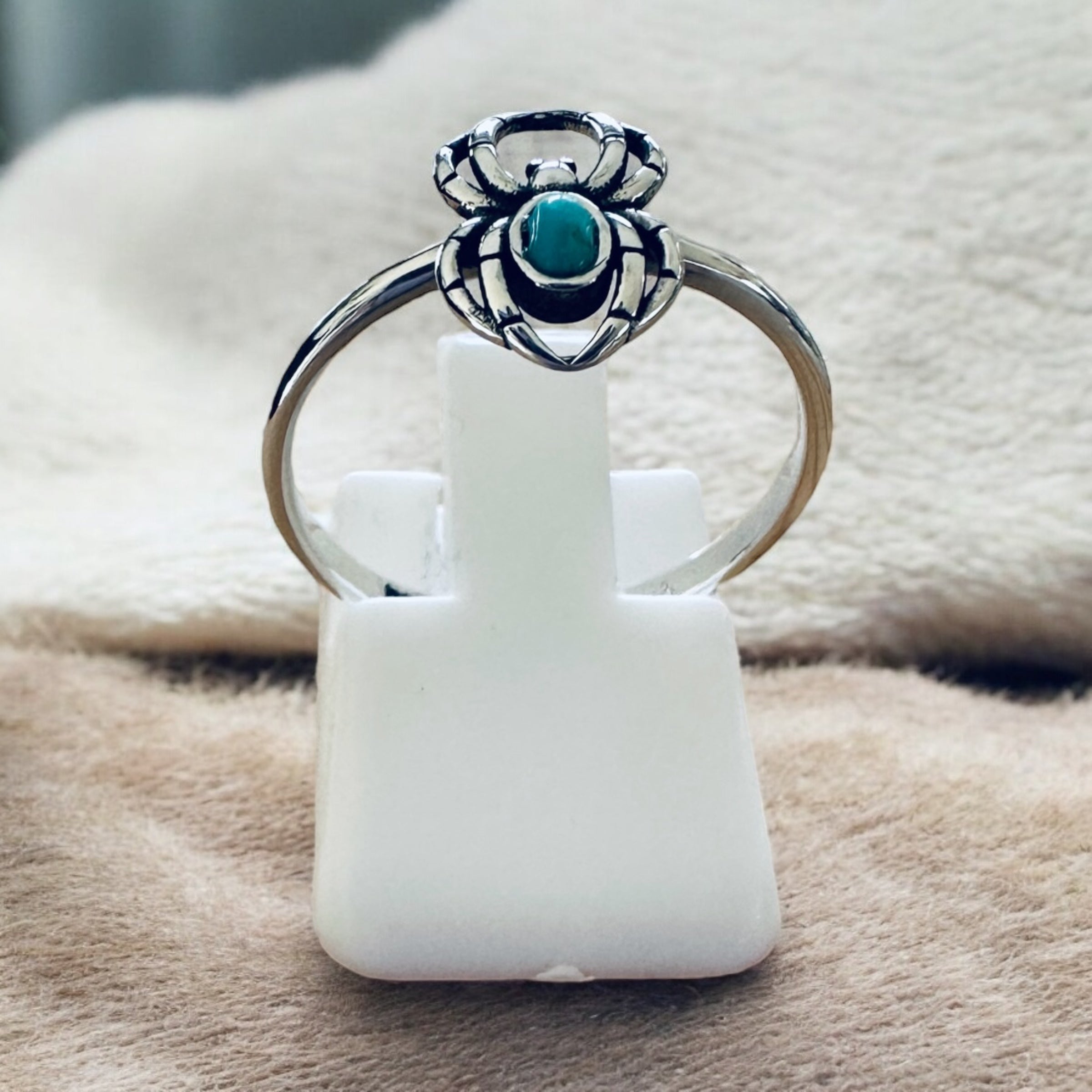 .925 Sterling Silver Genuine Turquoise Stone Spider Ring